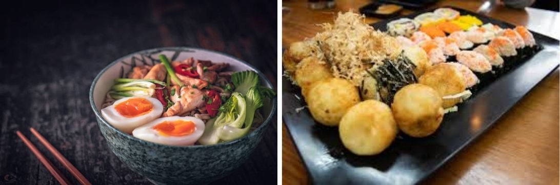 - Tempura: vegetables and seafood coated in a light batter and fried to perfection. A must-try in a specialised restaurant.