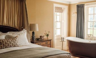 We had stayed here before, many years ago, when we were looking for an overnight stop off between north of Scotland & Edinburgh. We were keen to return after the change of ownership & refurb. It was a rocky start when we checked into our room but we were quickly moved, without any hassle, to another room which was much quieter. Although this room faced the road it had the most gorgeous pastoral views from the main window and in any event there was very little traffic. We liked the decor throughout the hotel. Classic and tasteful. No garish patterns so popular in some recent hotel refurbs. Husband visited their pub for a post drive beer whilst I enjoyed a lovely bath, coffee & macaroon. We had dinner & breakfast in the hotel & really enjoyed the food. Good quality, decent choice & well cooked & presented. The bed/pillows/bedding were all very comfortable and we slept extremely well. The only minor things I didn't like was the Pluto TV which doesn't show regular TV. Also, at 7am a guest in a room above us put on their radio and the noise was rather intrusive in our room, albeit we were actually awake at that time. This is a lovely hotel and we will definitely choose to stay here again.
