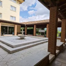 Beautiful structure surrounded by nature but close to the center, very friendly staff, ample parking, very spacious rooms. Excellent breakfast.