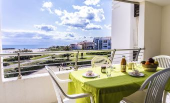 The nearest airport is Beziers Cap d'Agde Airport, just about 20 mins from hotel by car (14.3 km) away.Which airport is closest to Les Roches Marines?