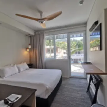 We needed to stop for a night in Airlie Beach for sailing the next morning, so chose the hotel for it's closeness to the marina. We didn't expect much, but were still a little disappointed to find the room was even tinier than it appeared in pictures; and that the windows were single-glazed and thus failed to stop any of the early-morning noises from the parking lot and rubbish containers being collected right underneath. Clearly, the hotel has not listened to feedback from previous customers about the noise. With room rates practically same as at nearby 4 star hotels, this place turned out to be poor value.
