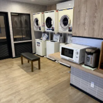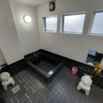 The room was clean and spacious, but it only had a toilet inside. The shower facilities were located outside the room in a communal bathhouse. The women's bath was private, while the men's bath was shared. There's also a laundry room with washers and dryers, a microwave, and vending machines. Overall, it was a very pleasant experience.