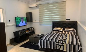 A stylish studio apartment with a kitchen space, full bathroom with water heater and bath tub, in a very serene environment. This unit is put together for you to feel at home. Book now and thank me later.About pets:Pets allowed: dogs and cats (limit 1 total).About checkOut:Check out before 11:00 AM.About children:Children allowed: ages 0-17.About checkIn:Check in after 4:00 PM.About smoking:Smoking allowed: in designated areas.About events:Events allowed: birthday parties and weddings.Maximum event attendees: 50,All Events must take place on the compound.