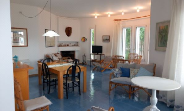 pretty independent villa with large terraces. Situated in an airy and peaceful position 200 meters from the sandy beach. It can accommodate 6 people in three comfortable bedrooms equipped with a ceiling fan; 2 services; large living room equipped with heat pump and fireplace, garage. Outdoor shower, barbecue and table tennis. Fully furnished and equipped. It can be inhabited in all seasons. On request a cot can be provided without supplement. Two beach chairs and a parasol are available free of charge for guests. Wifi free. The number of 6 people is to be considered as maximum hospitality; any additional needs must be agreed with the owner. The house is fed by a rainwater cistern for which attention is paid to waste.