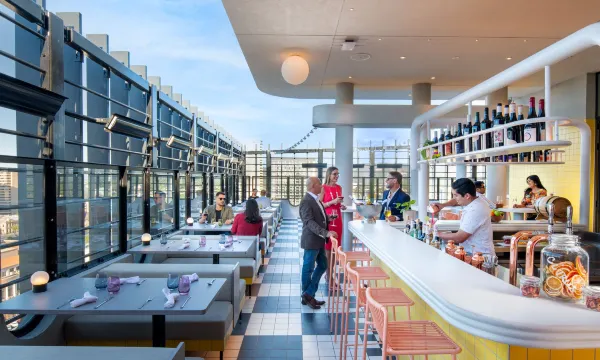Our restaurant and bar craft innovative flavors, drawing on the finest produce from Adelaide Market for a seasonal appeal. The ground floor houses our modern Italian restaurant and bar, Market & Meander, touting multicultural influences from Grote and Gouger Street. Take the elevator to our spectacular rooftop bar, Merrymaker, featuring an immaculate array of local delicacies. The drinks menu focuses on local beer and cocktail favorites with a twist, showcasing the best of South Australian wines.