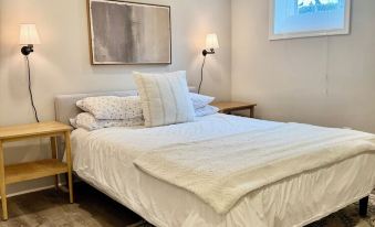 Adjacent to the kitchen, sink into the comfortable sofa and enjoy your favorite shows on the 47” TV, equipped with cable and smart capabilities for seamless streaming. Immerse yourself in music with the Bluetooth speaker, or for a nostalgic touch, spin a record on the turntable while savoring a good book. Whether you're catching up on work with high-speed WiFi or simply unwinding in this inviting space, every detail is designed to make your stay feel like home.