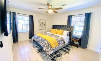 This one-level ranch home was restored with boutique luxury finishes, modern furnishing, and plenty of spunk. The kitchen and bathrooms were designed for a high-end boho retreat feel. The home also has a private backyard, deck and fire pit area.About pets:Pets allowed: dogs less than 50 lbs per pet (limit one pet total).About checkOut:Check out before 10:00 AM.About children:Children allowed: ages 0-17.About checkIn:Check in after 4:00 PM.About smoking:Smoking is not permitted.About minBookingAge:Minimum age to rent: 21.About events:No events allowed.