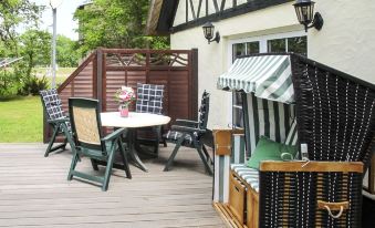 Cosy mews "Hühnerhaus". 100 m from the centre of Schwarbe, on the outskirts, 5 km from the centre of Altenkirchen, 7 km from the centre of Juliusruh, 800 m from the sea. For shared use: property 7'000 m2 with lawn and trees. Barbecue. In the complex: sauna (extra). Parking on the premises. Shop 4 km, supermarket 5 km, bus stop "Schwarbe, Dorfstrasse" 500 m, sandy beach "Nonnewitz" 3 km pebble beach 800 m, indoor swimming pool 4 km. Riding stable 300 m. Please note: Property ref. DE9066.647.1 is situated on the same property. 3-room house 70 m2 on 2 levels. Tasteful and wooden furniture furnishings: living room with dining table, satellite TV, CD-player and hi-fi system. Exit to the terrace. Kitchenette (oven, dishwasher, 4 ceramic glass hob hotplates, toaster, kettle, electric coffee machine). Shower/WC. Oil heating. Upper floor: 2 rooms with sloping ceilings, each room with 2 beds. Parquet floors. Terrace 16 m2. Terrace furniture. Facilities: children's high chair, baby cot. Internet (WiFi). Please note: non-smoking house. Maximum 2 pets/ dogs allowed. Smoke alarm.