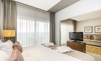 We could not recommend this hotel enough. Each and every one of the staff are so friendly and helpful. Everywhere was spotless and really well maintained and our room was cleaned daily. The terrace/bar and pool area are lovely and are surrounded by beautiful, manicured planting and grassed area. Huge tv and pool table to the side of the bar area. I loved the open plan nature of all these areas. Sitting on the bar terrace having a cocktail you would think you were in the middle of a park with only trees and rooftops all around. The room was huge with a large comfy bed and a really good fitted out kitchen with included a large fridge/freezer and proper oven. We didn’t need the air con but there was a unit in the main area and another in the bedroom area. Good thick towels as well. We went here to relax and couldn’t have asked for a better atmosphere, it was so peaceful and tranquil. I loved sitting on the balcony listening to and watching the birds in among the trees. We didn’t have a pool view but it made no difference to us at all. Location is great. There is a large supermarket about 5 mins away and then it is another 5 min walk into town with a few bars and restaurants on the way. The town is for rambling in with tiny quaint streets and is full of amazing restaurants, cafes and bars. If you like walking, the nature boardwalk is a must which leads onto a beautiful beach. There are stunning views all along it, then grab a coffee or a cocktail overlooking the harbour and boats as a reward for all the hard work : ) We went for a special occasion and on the day, we came back to the hotel room to find wine chilling in an ice bucket with chocolates and a lovely platter of fruit with the sweetest of notes left beside it. It was such a lovely surprise and a thoughtful thing to do and definitely added another great memory to the occasion. We really enjoyed our stay here and would love to return in the future. Thank you to all the staff for making our break special.