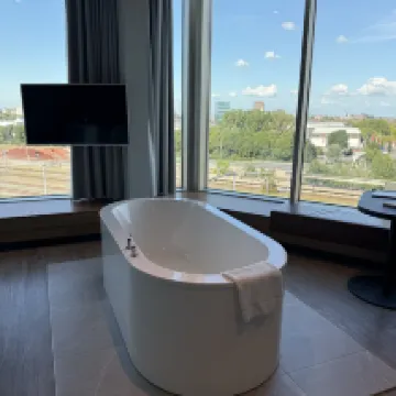 The view is in front of the station nice, the room is bigger than I expected, bathtub is awesome. Excellent value for money
