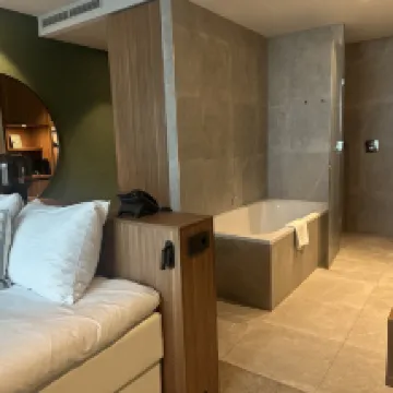 I booked this hotel for my husband and mother-in-law as I am staying in another nearby hotel attending a conference. The room was clean and modern. The coffee machine in the room didn't work very well. It's a bit inconvenient to have "open bathroom" design.