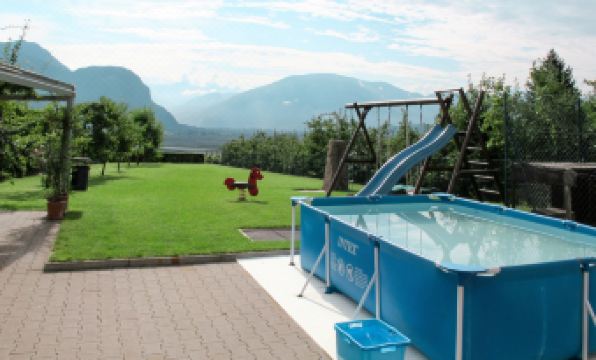 Small residence "Rosengartenhof", 283 m a.s.l., surrounded by trees and vineyards. 5 apartments in the residence. 600 m from the centre of Andrian/Andriano, 10 km from the centre of Bozen/Bolzano, in an elevated position on a slope, in the residential district, south-east facing position. For shared use: property (fenced), well-kept garden with lawn, orchard, lawn for sunbathing, swimming pool (above ground) (2 x 4 m, depth 100 cm, seasonal availability: 01.Jun. - 31.Aug.). Outdoor shower, arbour, garden furniture, barbecue, children's playground (slide, swing). In the complex: table football, washing machine (for shared use, extra). Beverage service and breakfast possible (extra). Parking (for 9 cars) at the house on the premises, communal covered parking. Shop 600 m, restaurant, bus stop "202 Andrian-Terlan-Nals" 600 m, railway station "Terlan (Linea Bolzano-Merano)" 2.5 km, outdoor swimming pool 1.2 km, thermal baths "Meran/Merano" 17 km. Golf course (9 hole) 4 km, cycle lane 1 km. Nearby attractions: Meran/Merano 17 km, Trient/Trento 65 km, Mountainbike 500 m. Well-known ski regions can easily be reached: Meran 2000 23 km, Seis/Siusi (Grödner Tal / Val Gardena) 37 km, Obereggen/S.Floriano (Skicenter Latemar) 36 km. Well-known lakes can easily be reached: Kaltern/Caldaro 21 km, Montiggl/Monticolo 17 km. Hiking paths: Andrian/Andriano 250 m. Local sale of farm products. Please note: the owner lives in the same residence. "Sigmundskron", 3-room apartment 46 m2 on 2nd floor, south-east facing position. Bright, practical and cosy furnishings: living/dining room with 1 sofabed, dining nook and satellite TV. Exit to the balcony. Walk-through room with 1 double bed and shower/WC. 1 double bedroom with panoramic window. Exit to the balcony. Open kitchen (oven, dishwasher, 4 ceramic glass hob hotplates, toaster, kettle, freezer, electric coffee machine). Gas heating. Balcony. Balcony furniture. Marvellous panoramic view of the mountains and the valley. Facilities: washing machine, safe, children's high chair, baby cot. Internet (WiFi, free). Please note: non-smokers only. No mandatory extra charges to be paid on-site except for local tax. Bedlinen, final cleaning and all energy costs are included. IT021002B5V7TF92FR