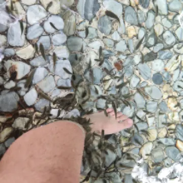 Although it's located halfway up the mountain, it's very convenient as you can call for a shuttle service anytime. The hot springs offer unlimited access, and the fish therapy is definitely worth trying. The ambiance is very pleasant and relaxing. I would definitely come back again.