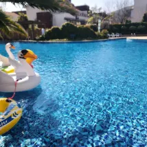 A wonderful hotel located in the mountains. The scenery is stunning. We stayed there during the ITF tennis tournament. It's a very good club with four indoor and five outdoor clay tennis courts. The staff, although they don't speak English, use an online translator and try to help with everything. They're very friendly and polite. Cleaning is done daily; you don't even notice when they're done. The hot springs, available from 10:00 a.m. to 10:00 p.m., help you recover after tournament matches. I'd happily come back.