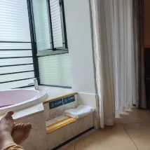 The room is super spacious, with complete supporting facilities and clean and tidy. I checked in on the first day of the Chinese New Year, and the front desk upgraded me to a deluxe suite for free. I loved it! The private bathing pool in the room is clean and hygienic, and the water temperature is suitable. My skin feels very smooth after bathing! Highly recommended!