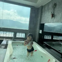 Relaxing lake view hotel with spa. Our little girl enjoy the spa like a swimming pool.
