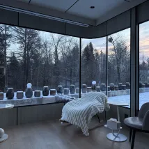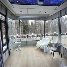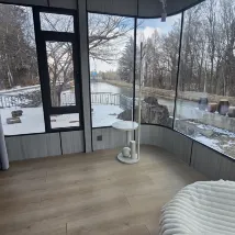 The capsule accommodation has just opened, so the rooms are very new and very private because there are only 2 rooms. And it is about a 200 meter walk from the other rooms, but not too far. You can take a lot of pictures. Behind the rooms there are deer and a forest. You can walk and see them. The host will pick you up at the bus parking lot (free). When you check out, you can drop you off (for a fee). The atmosphere is very good, quiet, the morning light is beautiful. It is also near the boat trip point. I would like to go back and stay again.