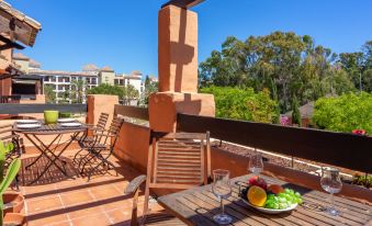 Hacienda del Sol 10 km from Marbella: Apartment block "Hacienda del Sol". 10 km from the centre of Estepona, 5 km from the centre of Puerto Banús, in a quiet, sunny position, from the sea, 200 m from the beach. For shared use: garden lawn, swimming pool (seasonal availability: 01.Jun. - 30.Sep. pool opening hours: 12:00-20:00). Unconventional pool shape. Children's pool, outdoor shower, tennis, children's playground. In the complex: lift. Communal covered parking space n 81. Shop, grocery 900 m, restaurant 200 m, bus stop "Isdabe" 900 m, sandy beach 200 m. Golf course (18 hole) 3 km. Please note: not suitable for small children. The owner does not accept any youth groups. The pool has a lifeguard from 15.06 to 31.08. Out of season, bathing is at your own risk. 3-room apartment 100 m2 on 1st floor. Comfortable and cosy furnishings: living/dining room with digital TV. Exit to the terrace. 1 room with 2 beds (90 cm, length 190 cm). 1 room with 1 french bed (160 cm, length 200 cm), bath/shower/bidet/WC. Kitchen (oven, dishwasher, 4 ceramic glass hob hotplates, toaster, kettle, microwave, freezer) with dining table. Bath/WC. Electric heating, air-conditioning. Terrace 16 m2. Terrace furniture. Facilities: washing machine, iron, hair dryer. Internet (WiFi, free). Parking space n 81. Please note: not suitable for small children. Non-smokers only. VUT/MA/53120 ESFCTU0000290370003828930000000000000000VUT/MA/531202