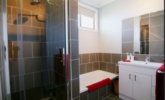 Huge tiled lounge / dining room, with RCAC, large TV and plenty seating. Modern kitchen with dishwasher. 1 giant bedroom / rumpus upstairs with RCAC, sleeps 4 - 6 children, 3 double bedrooms upstairs for parents and 1 smaller bedroom downstairs. One main bathroom inc bath, and an extra toilet downstairs. Full laundry facilities. Large, secure backyard with deck, bbq and citrus trees.