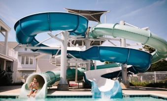 Our house has the option to purchase temporary memberships at Shoals Club (pool/restaurant/beach access/fitness center) AND Bald Head Island Club (golf/tennis/pool/restaurant/croquet/fitness center). Not all homes have access to both clubs. Shoals Club is closest to the house (5 minute walk), oceanfront and offers pools, dining, bars, fitness center and beach access. Bald Head Island club offers golf, tennis, croquet, dining, pools, park and water slide. Both clubs offer beautiful views and excellent food. Photos of the clubs are included in the pictures for our house.