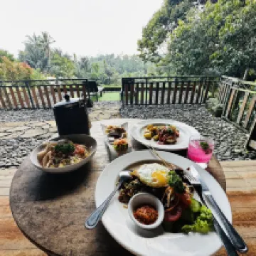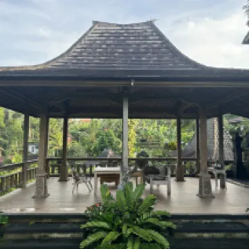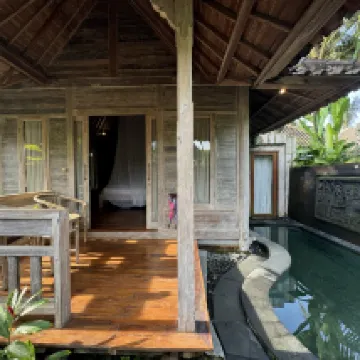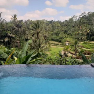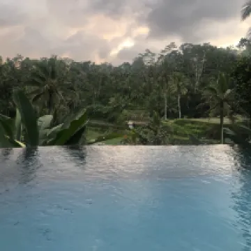 Never stayed the night as we are locals, but visit often for breakfast or lunch on morning walks. Newly expanded it is more picturesque than ever. The grounds are beautiful with water running everywhere. Nice menu with Indonesia and western offerings. Have visited the rooms and they are well appointed, with tubs, tub views, private pools and the place itself is surrounded by nature. You can explore the area easily by foot if you enjoy walking through nature or the village roads and paths. Highly recommended.