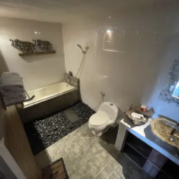 The estate is set in a beautiful location with serene lake and valley views, but unfortunately, the experience did not live up to expectations. Getting there is very difficult—after a sharp left off the main road, you're directed down a narrow country path that becomes increasingly steep and abrupt, making access quite a challenge. While the setting is picturesque, the property itself feels old and derelict. The pool had a massive palm leaf floating in it on arrival, and in December the water was far too cold to enjoy. The room had several issues: spiders, lizards, and blood-sucking flies were frequent visitors. The air conditioner was extremely old, noisy, and kept shutting down every few minutes. The TV didn’t work properly, and although the property supposedly has three Wi-Fi networks, they shut them off in the evening, leaving us without connection throughout our stay. The bathtub couldn’t hold water, making it unusable, and overall, the room and facilities clearly need refurbishment if the property wishes to retain its star rating.