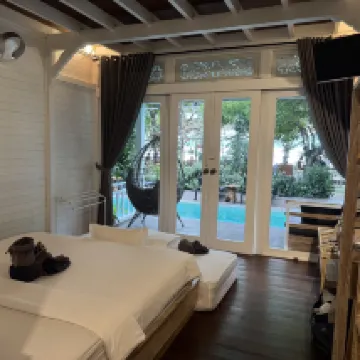 The balcony of the room leads to the swimming pool. The dining area is beyond the swimming pool, and the beach is very close. There is also music from the resident singer at night, which is also very enjoyable. The 1.8-meter bed is also very large and comfortable. The scenery is beautiful, the breakfast is also delicious, and it feels like a vacation.