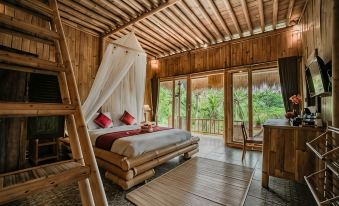Near the rice fields area and in a remote and quite area. Beautiful traditional bamboo made villas with lovely scenery. The place is magical and offers a true taste of Bali. Loved the bamboo villas with our own private villas. Breakfast was served in the room and was nice. Definitely will love to come back.