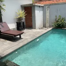 Great, very clean guesthouse with pool, communal kitchen/dining area & free water refills, in a quiet street, about 1km from beach. Great local warungs nearby. Staff were lovely. Highly recommended.
