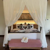 I will start by saying that the hotel seems to have 4 valley villas, and they do not all look like the pictures. The size of the pool and view from it depends on which room you are assigned. I was given a room on the lower level and was very disappointed by the view and the amount of bugs in the room, including dead bugs all around the bathtub and even in my bed. They were full that night so I had to stay in that room, but the next day someone checked out and I was able to move to a higher level room. This room was much better; the pool was much larger, had a more panoramic view and the room had a lot less bugs (though still some, as well as lizards in the ceiling). So just be aware of the inconsistencies across the same tier rooms (I wasn’t upgraded, just moved to a different valley villa, and the difference was astounding). The service at the hotel was excellent; they were very eager to make sure I enjoyed my stay, and as an apology for my earlier disappointment and the inconvenience of changing rooms they gave me a free floating breakfast, free hour massage, free flower bath and free minibar. This was above and beyond what I expected, and I was very impressed with the hospitality. The location for me was great as I had already seen everything in Ubud, I had come to this hotel to stay in the resort and enjoy the jungle. It may be an inconvenient location if you are wanting to explore the downtown area. The spa was a very relaxing experience, with very warm and welcoming staff. My butler Dewa was also amazing, ensuring I was satisfied throughout my stay. I would stay here again, but would make sure to request room 902.
