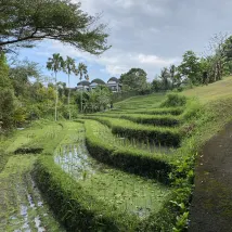 Our private villa was a standout feature—it was spacious, comfortable, and had a kitchen, which made it easy for us to prepare a few meals ourselves. We also appreciated the location; it was quiet and surrounded by stunning rice fields, but still close enough to walk to a nearby night market and other rental places.