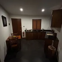 My favourite place is the outdoor bath and shower area 🛁and the toiletries. Bed was so comfortable, bedsheets and towels fresh and clean. There is a kitchen area we didn't need to use it.The pool water doesn't look very clean, I can understand because of fhe fallen leaves surrounding it. We didn't use it too.