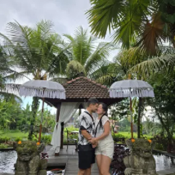 When you think of Bali, images of a fabulously beautiful hotel come to mind, where everything is perfect: the nature, the people, and the pool... And how lucky we were to find the hotel from my fantasies! Everything is perfect here... squirrels live above the pool and jump from branch to branch! The staff is all polite and beautiful! The atmosphere is like a fairytale jungle... when we checked out, it started raining, and words cannot describe the romance of the hotel! I will definitely return and wholeheartedly recommend this place.
