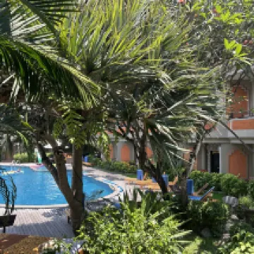 I have mixed feelings about this hotel. The rooms and common areas are very tired. It is obvious that the hotel needs some renovation. But I saw the staff fixing the plaster on the hotel, they are trying to take care of it. Maybe because I have become accustomed to clean and fresh interiors - I was not very happy to be in the room. But! The hotel courtyard is simply magical! Well-kept clean territory, luxurious palm trees, a pond with water lilies and fish, squirrels on the territory, greenery on the walls - all this is delightful, especially when you sit on the terrace in the rain, as it was in my case. The breakfast was quite good - delicious omelette, fruit, pastries, deep-fried food, coffee. There is not much variety, but you will not go hungry. I would especially like to mention the hotel staff - they are great! Nice, friendly, helpful, welcoming! They do not refuse to help and are proactive themselves. only because of them I want to give the hotel a high rating, but if you are as picky about the interior and newness as I am - you may not like being in the room. outside the room I was delighted with the appearance and the staff, as well as the place where the reception and breakfast area are located - it's all very good.