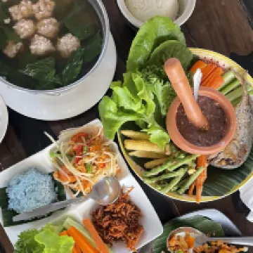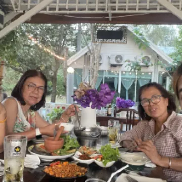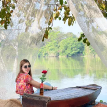 For dinner, choose to eat Khantok Mon set. Riverside, sunset view