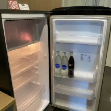 The wardrobe is large and great for hanging clothes. The fridge is big but no free water. There is a small terrace.