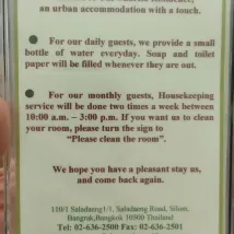 My third time staying there and I absolutely love it. Lady at the counter is very sweet and helpful. Location is amazing, close to Lumphini park and metro.
