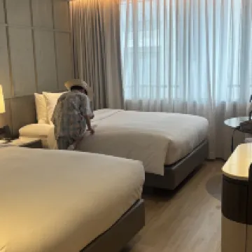 Overall, it was a decent stay. The room was clean and bright, and the service was good. However, the room felt a bit small; with two people and their suitcases open, it got quite cramped. Additionally, the hotel's soundproofing wasn't great, and there was construction work happening right across the street outside our window.