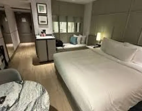 The room was a bit small, but it was spotlessly clean. However, the location is fantastic – very close to the shopping district and conveniently near the subway station. The hotel's overall decor is stylish and sophisticated. Highly recommend!