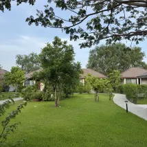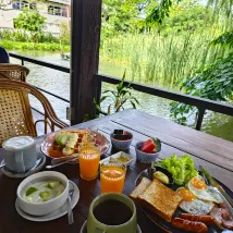 a small good hotel relatively close to Suvarnabhumi airport (I'll write about the location in more detail below), a simple neat room (we lived in a building, they also have houses, probably more interesting in them), a lot of greenery on the territory and a lake with catfish, as well as a good Thai restaurant, the food is delicious!