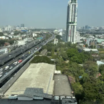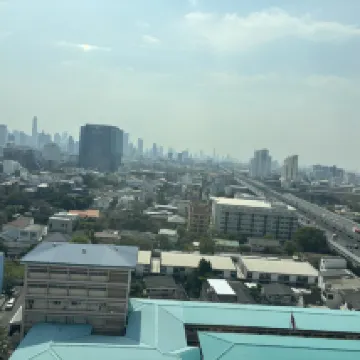 This place is pretty nice, very nice and spacious rooms and a very nice rooftop with a pool and the full view of Bangkok. The gym too also very great. Plenty of good equipment to use. I paid £77 for 4 nights which is amazing. There is a 7/11 less than 10 min walk. Staff very friendly and helpful. This hotel also offers 3 times a day private free shuttle to 4 destinations at 10:00am/12:00pm/14:00.