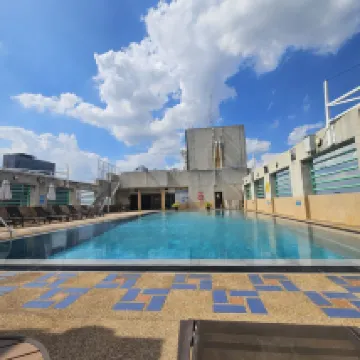 The hotel is a bit old and front desk lady is not very friendly. The elevators are old but the lounge is great. You can include breakfast . The swimming pool is on the top floor and the view is amazing . A bit far to bts station . The rooms are old too.