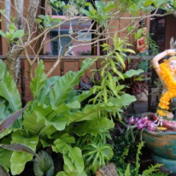 walking down the street on their way to work. They stop to eat or pick up street food en route which keeps the prices here low and variety high.Drivers collect and deliver you to the airport at all hours of the day and night for a mere 150 baht. The breakfast is excellent value, beautifully presented and served with a sunny side up smile by a lovely team of two. It's peaceful and sweet smelling inside and out as Duran Duran and Durian are banned .