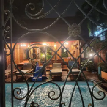 Not luxury ( which I avoid anyway) but they tend the garden, customers and rooms with love, meticulous care and devoted attention . Behind the plants in the garden by the beautiful pool is a mini Buddhist shrine to meditate in and a bed/couch for massages after a little swim in crystal clear water. A real oasis and a lucky find. Lots of the airport flight staff and stewards live nearby, so you can be lucky and see your air hostess and check -in guy