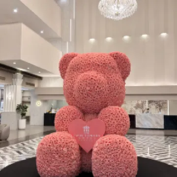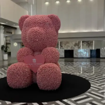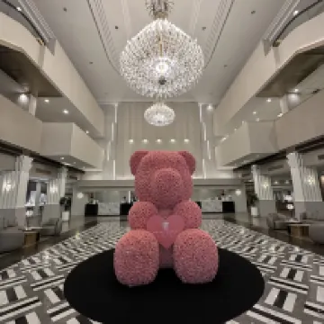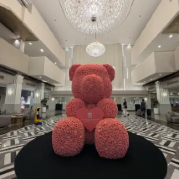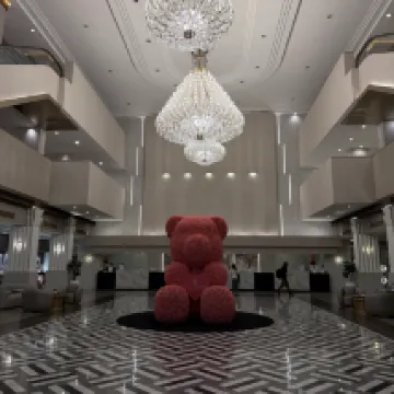 When you walk into the hotel lobby it takes your breath away, it’s stunning. The lobby is big and you’re presented by a big rose bear. When u try check in early your not allowed, then when it comes 2pm the queues are massive to check in. The pool is amazing, a proper sun trap. The gym is very good too. But the hotel room is very outdated and the beds aren’t comfy.