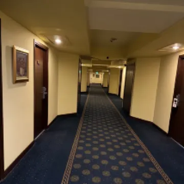 The hotel is rated four stars and is located in the city center. The lobby is grand and looks very upscale, but the hallways and rooms show their age a bit. After all, it's 20 years old, and it must have been a top-notch hotel back then, especially for its downtown location. The rooms are spacious. We booked a premium non-smoking room, and there was indeed no smoke smell.
