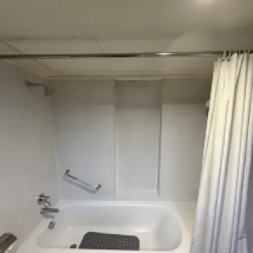 The weak shower water pressure and the fact the showerhead couldn't be removed were slightly inconvenient. Also, the bathtub's shape, which traps water, was unhygienic.