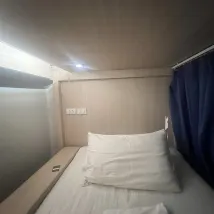 I was here for three nights. Very friendly staff, they greeted me warmly, told me everything and showed me everything. There is a kitchen, here you can make yourself free coffee or tea, and there are also snacks. Clean, nice and friendly hostel. Snow-white linen, two types of lighting, two pillows. It was very comfortable to sleep. The room is a little cramped, but it is always fresh and cool. There is a place for coworking. Great place, I could stay here for a month.