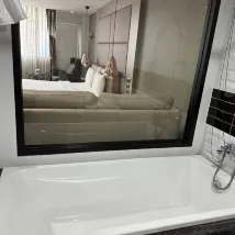 The bathroom was spotless, equipped with both a rain shower and bathtub, and came with all the necessary toiletries. There was even a safe and plenty of closet space for longer stays.
