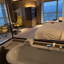 During my stay at Crowne Plaza, I found the accommodation very satisfactory. The room was a good size, featuring a comfortable, super large bed, mini fridge, kettle but no milk, this had to be requested. Also, the slow drainage in the shower was messy and inconvenient. Overall the room was very nice. The hotel’s lobby was spacious and attractively designed, setting a welcoming tone upon arrival. The lounge and the 40th-floor bar were definite highlights, offering a cool and inviting ambiance.